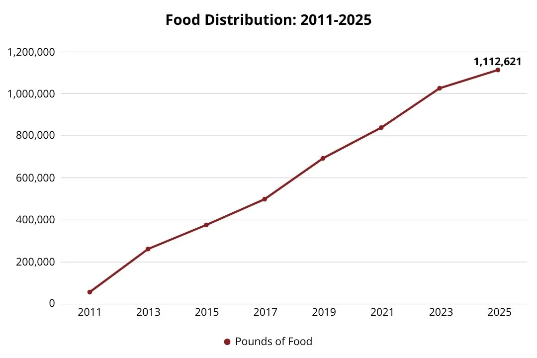 Every $1 donated provided an estimated $6.33 in food to our neighbors in need. These numbers reflect real lives changed – families fed, neighbors housed, and individuals supported in moments of crisis.